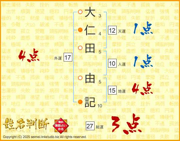 大(3画)仁(4画)田(5画) 由(5画)記(10画)
