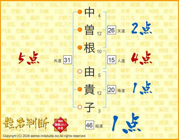 中曽根由貴子さんの総運は46画の1点!