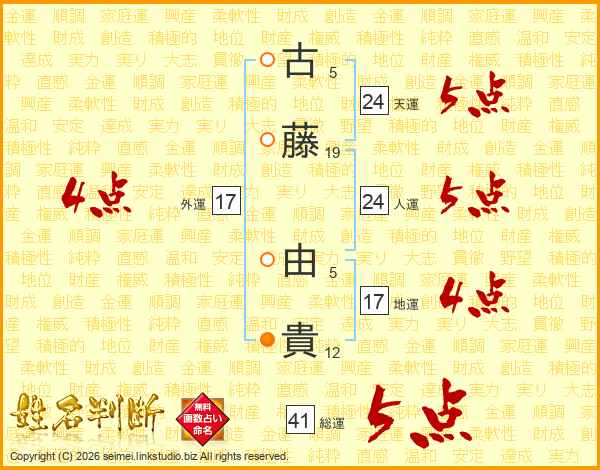金運 順調 家庭運 興産 柔軟性 財成 創造