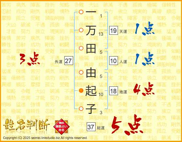 一万田由起子さんの総運は37画の5点!