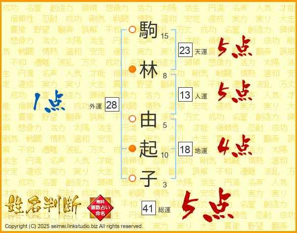 駒林由起子さんの総運は41画の5点!