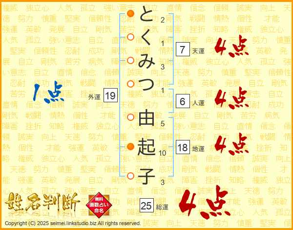 とくみつ由起子さんの天運は7画の4点!