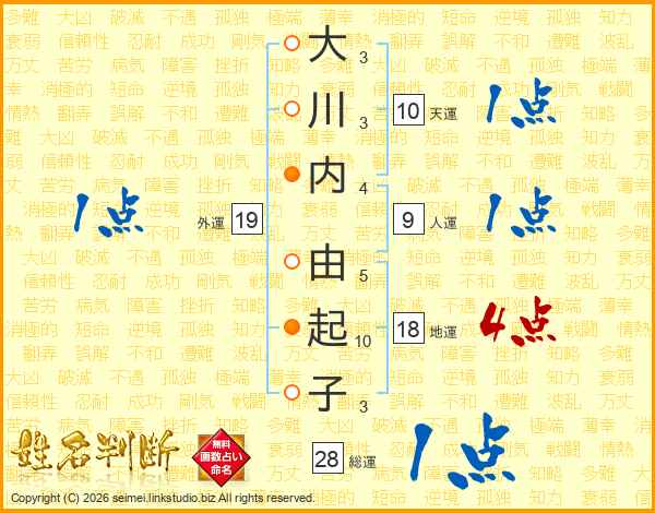大(3画)川(3画)内(4画) 由(5画)起(10画)子(3画)