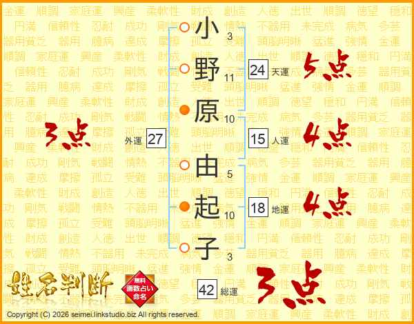 小野原由起子さんの総運は42画の3点!