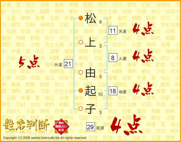 松上由起子さんの総運は29画の4点!