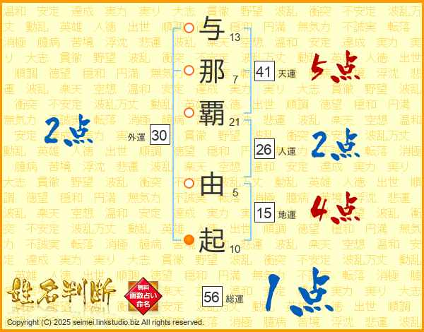 与那覇由起さんの天運は41画の5点!