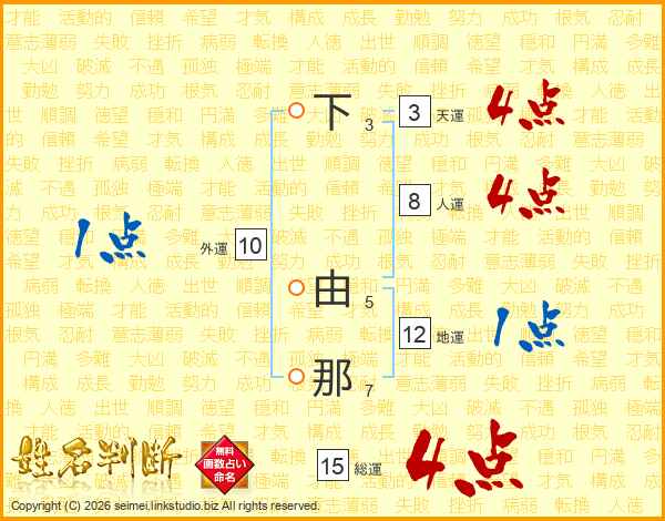 下由那さんの総運は15画の4点!