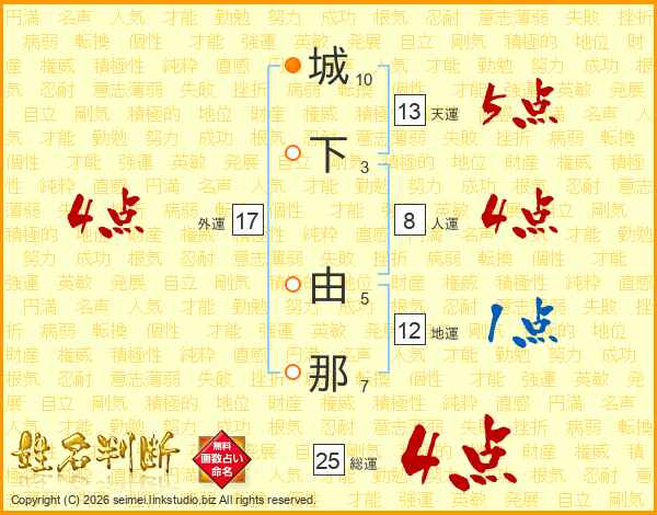 城下由那さんの総運は25画の4点!