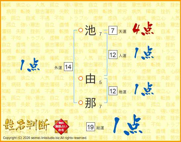 池由那さんの総運は19画の1点!