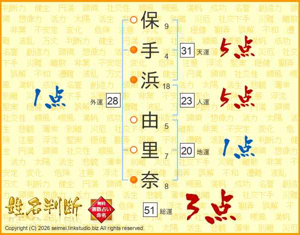 保手浜由里奈さんの総運は51画の3点!