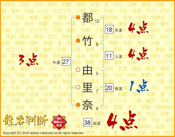 都竹由里奈さんの総運は38画の4点!