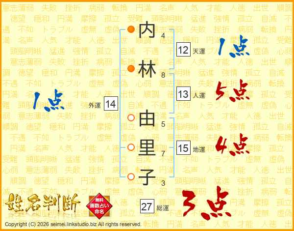 内林由里子さんの総運は27画の3点!