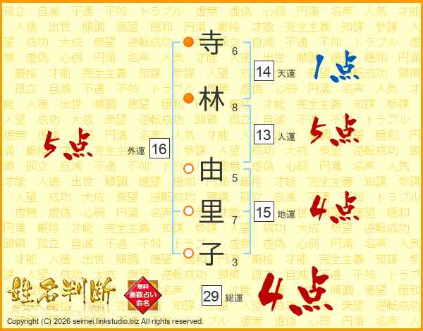 寺林由里子さんの天運は14画の1点!