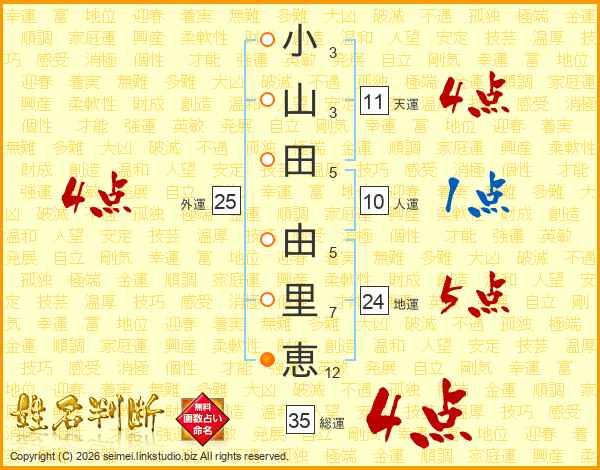 小山田由里恵さんの総運は35画の4点!