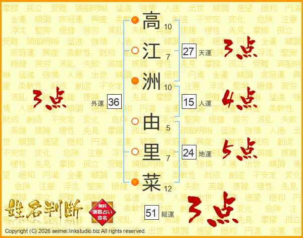高江洲由里菜さんの天運は27画の3点!