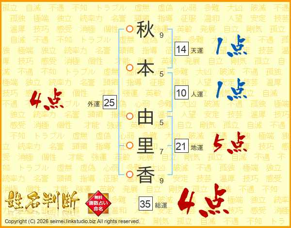 秋本由里香さんの総運は35画の4点!