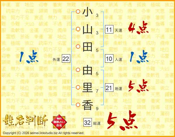 小山田由里香さんの総運は32画の5点!