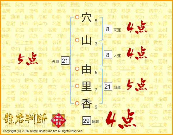 穴(5画)山(3画) 由(5画)里(7画)香(9画)