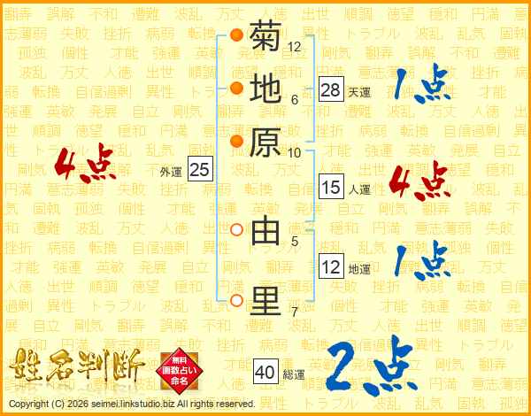 菊(12画)地(6画)原(10画) 由(5画)里(7画)