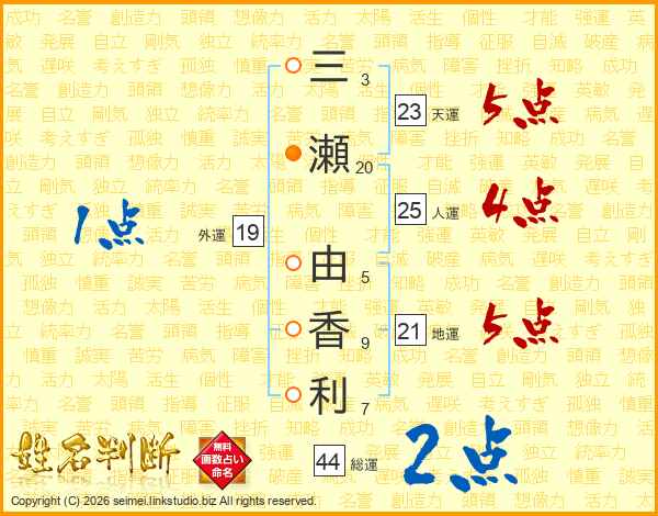 三瀬由香利さんの人運は25画の4点!