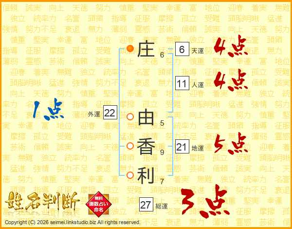 庄由香利さんの総運は27画の3点!