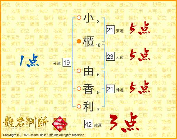 小櫃由香利さんの天運は21画の5点!