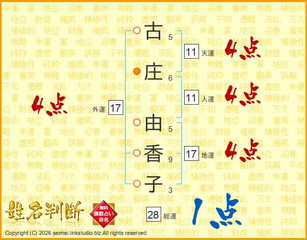 古庄由香子さんの天運は11画の4点!