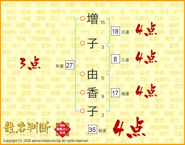 増(15画)子(3画) 由(5画)香(9画)子(3画)