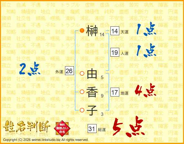 榊由香子さんの総運は31画の5点!