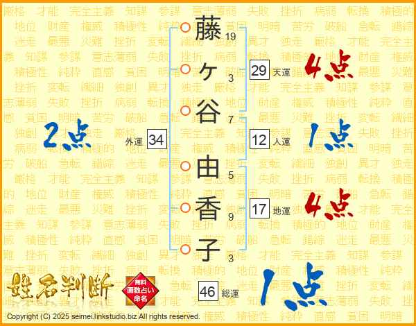 藤ヶ谷由香子さんの総運は46画の1点!