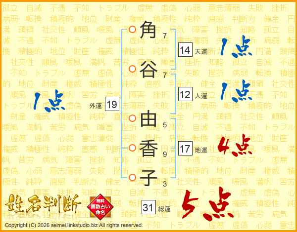 角谷由香子さんの総運は31画の5点!