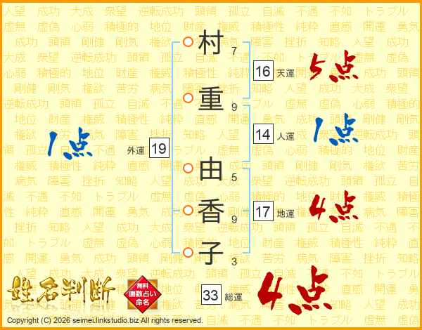 村重由香子さんの総運は33画の4点!