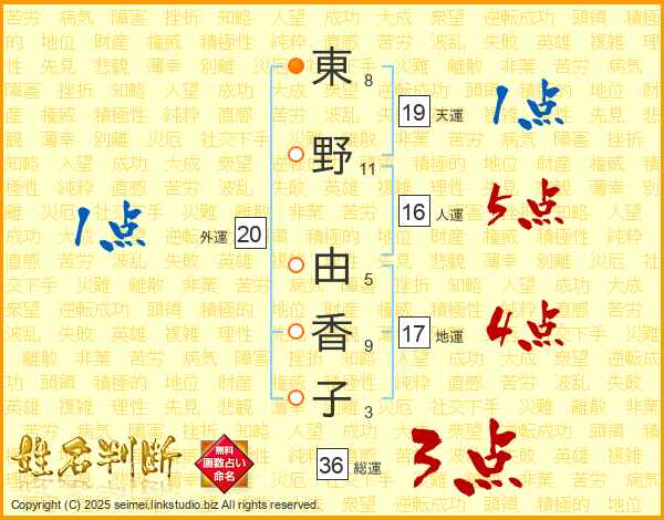 東野由香子さんの天運は19画の1点!