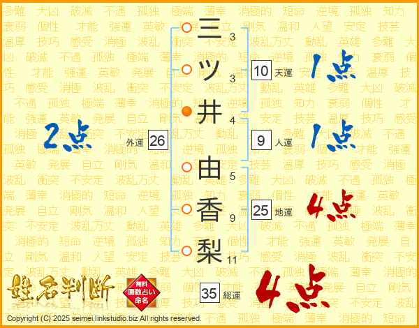 三ツ井由香梨さんの地運は25画の4点!
