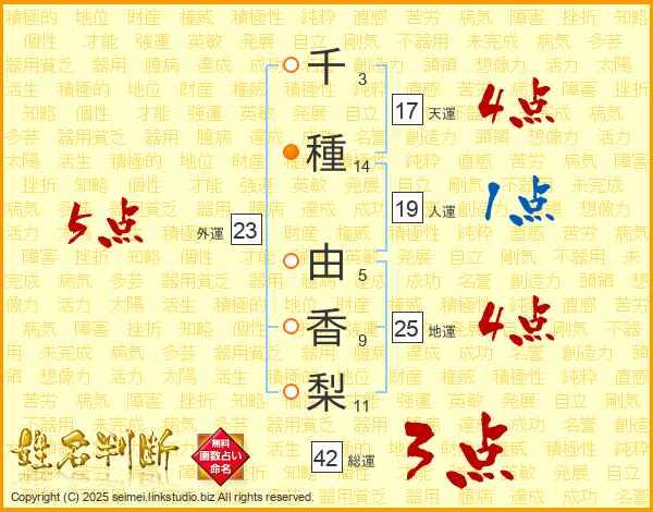 千種由香梨さんの天運は17画の4点!