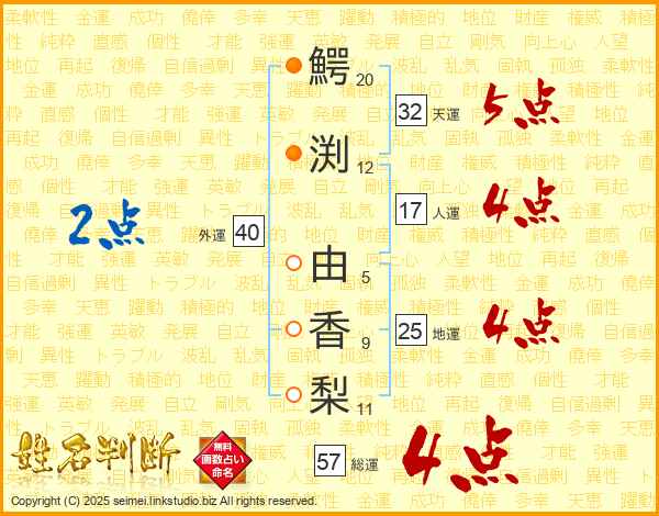 鰐渕由香梨さんの天運は32画の5点!