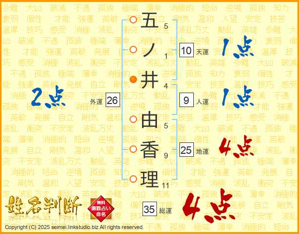 五ノ井由香理さんの総運は35画の4点!