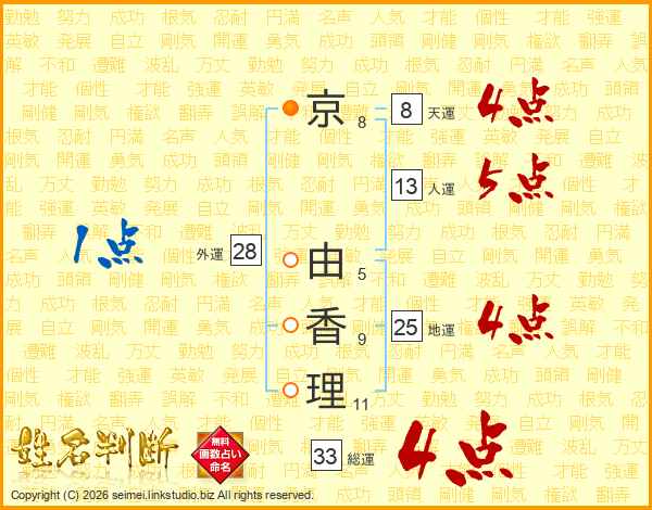 京由香理さんの総運は33画の4点!