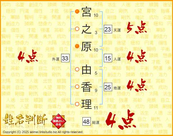 宮之原由香理さんの外運は33画の4点!