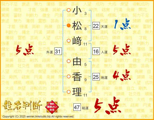 小松﨑由香理さんの総運は47画の5点!