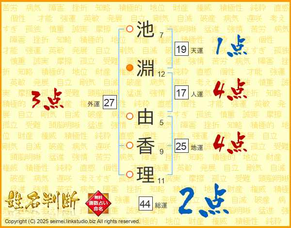 池淵由香理さんの総運は44画の2点!