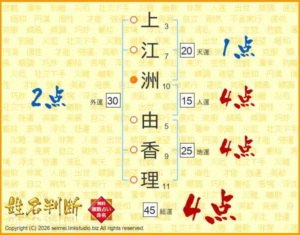 上江洲由香理さんの総運は45画の4点!