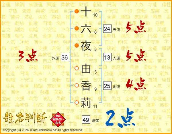 十六夜由香莉さんの総運は49画の2点!