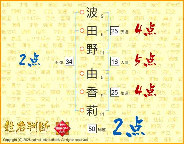 波田野由香莉さんの天運は25画の4点!