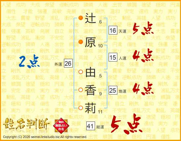 辻原由香莉さんの総運は41画の5点!