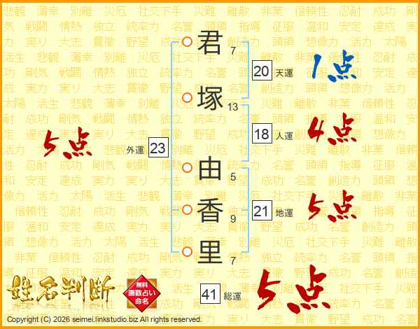 君塚由香里さんの総運は41画の5点!