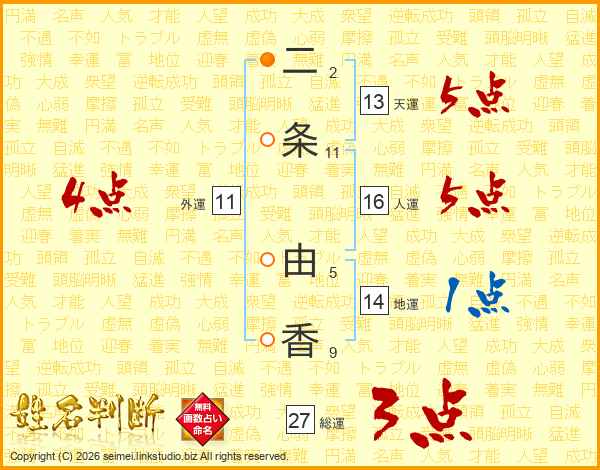 二条由香さんの天運は13画の5点!