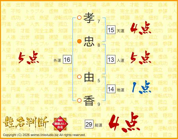 孝忠由香さんの総運は29画の4点!