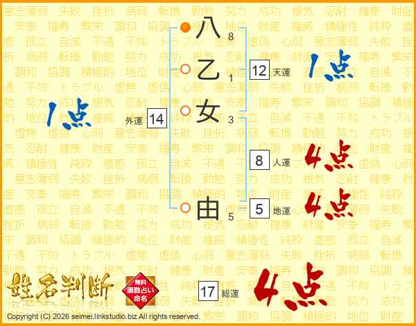 八乙女由さんの総運は17画の4点!