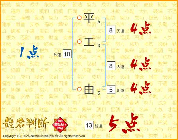 平工由さんの総運は13画の5点!
